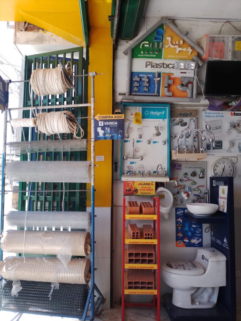 Venta de materiales de construcción, artículos de ferretería en general como: acabados, agregados, pinturas, griferías, artículos de limpieza, materiales eléctricos, metal mecánica, soldadura, herramientas navales, y ventas al por mayor y menor.