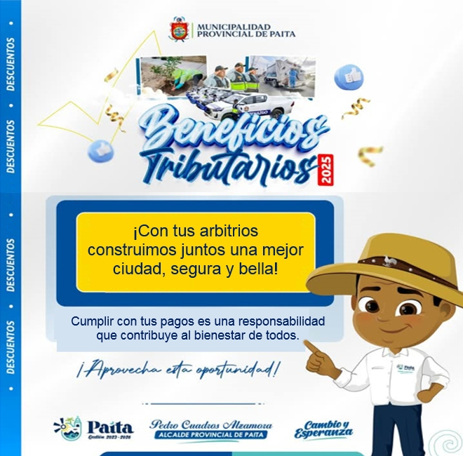 Noticias Aviso: ¡Con tus arbitrios construimos juntos una mejor ciudad, segura y bella! admin noviembre 27, 2025 Deja una respuesta Cancelar la respuestaTu dirección de correo electrónico no será publicada. Los campos obligatorios están marcados con *Comentario * Nombre * Correo electrónico * Web Guarda mi nombre, correo electrónico y web en este navegador para la próxima vez que comente. Historias relacionadas 🔵🌱A través del Programa Municipal EDUCCA, estamos sensibilizando a toda la población para fomentar una cultura ambiental responsable, promoviendo el cuidado del ambiente, el reciclaje y la protección de nuestros recursos naturales.💚🌳 1 min de lectura Noticias 🔵🌱A través del Programa Municipal EDUCCA, estamos sensibilizando a toda la población para fomentar una cultura ambiental responsable, promoviendo el cuidado del ambiente, el reciclaje y la protección de nuestros recursos naturales.💚🌳 diciembre 10, 2025 🔵📌Hoy, 9 de diciembre, recordamos la Batalla de Ayacucho, un hecho histórico que aseguró la independencia del Perú y consolidó el camino hacia nuestra libertad. 1 min de lectura Noticias 🔵📌Hoy, 9 de diciembre, recordamos la Batalla de Ayacucho, un hecho histórico que aseguró la independencia del Perú y consolidó el camino hacia nuestra libertad. diciembre 9, 2025 🔵📌MUNICIPALIDAD PREMIARÁ A INSTITUCIONES EDUCATIVAS GANADORAS DEL CONCURSO “MI ESPACIO VERDE II” 1 min de lectura Noticias 🔵📌MUNICIPALIDAD PREMIARÁ A INSTITUCIONES EDUCATIVAS GANADORAS DEL CONCURSO “MI ESPACIO VERDE II” diciembre 5, 2025