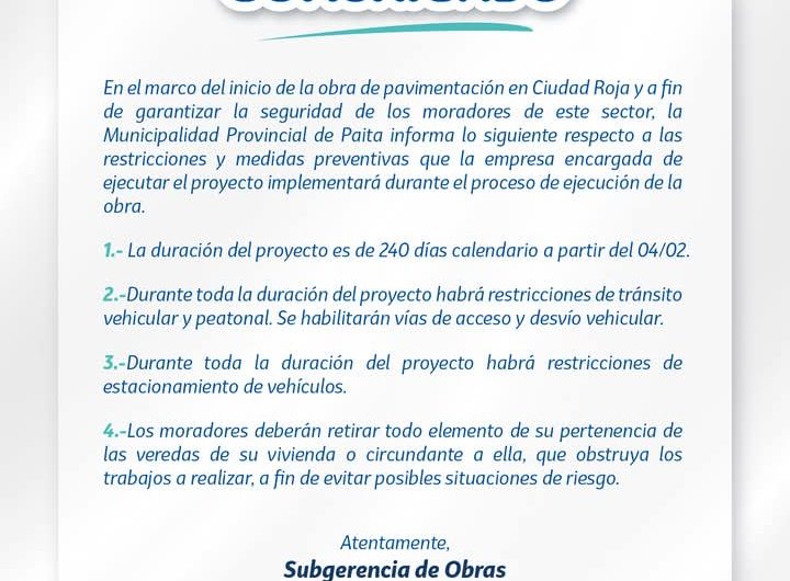 📌La Municipalidad Provincial de Paita a través de OMAPED, iniciará este 03 de febrero la campaña de...