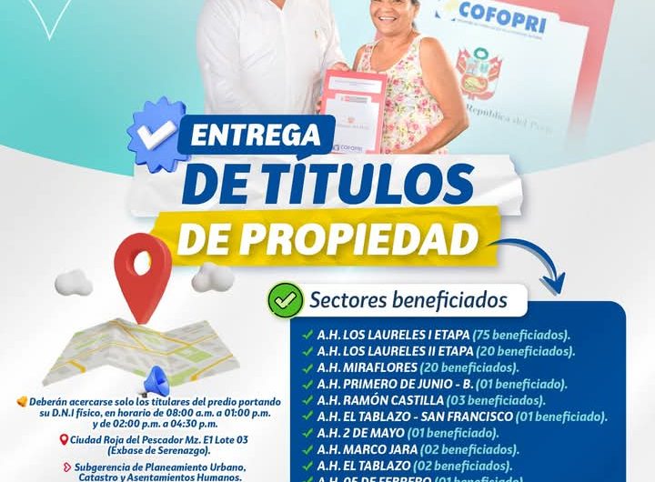 ✅🤝La Municipalidad Provincial de Paita entregará títulos de propiedad, y los beneficiarios están adjuntos en el siguiente...