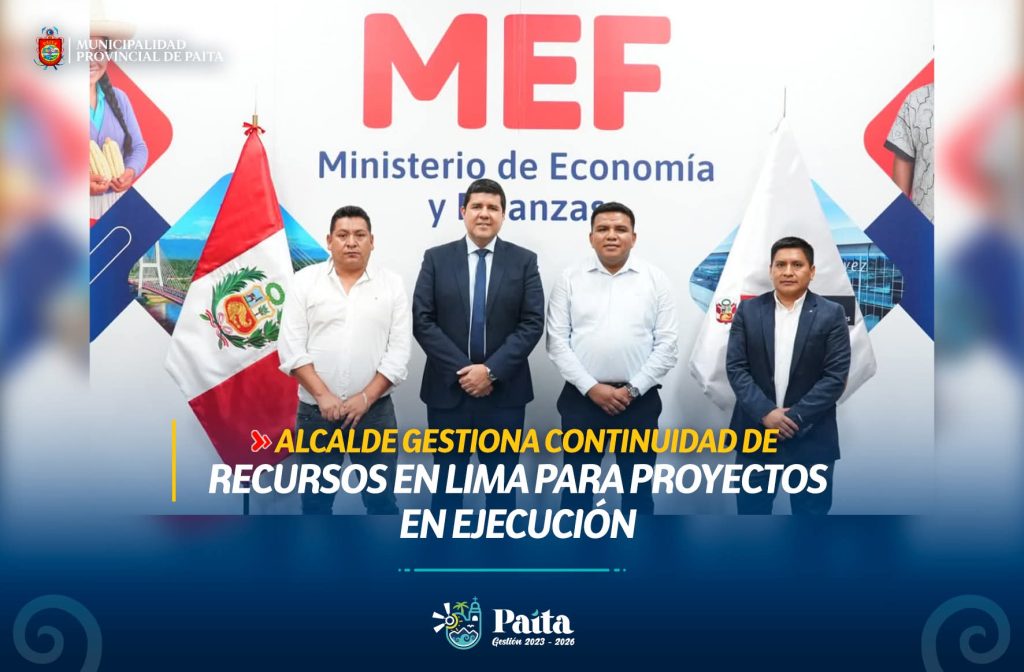 鉁匛l alcalde de la provincia de Paita, Pedro Cuadros Alzamora, sostuvo una reuni贸n con el viceministro de Econom铆a, G茅rard L贸pez, con el objetivo de garantizar la continuidad de los recursos destinados a los proyectos en ejecuci贸n con financiamiento del gobierno nacional.