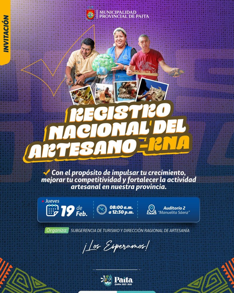 鉁匧a Subgerencia de Turismo de la Municipalidad Provincial de Paita invita a formar parte del Registro Nacional de Artesanos.